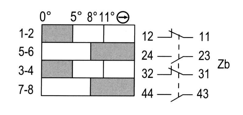 Wyjście od dołu 5m kabel ośmiożyłowy Ilość zestyków NO: 1 Ilość zestyków NC: 3